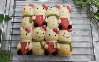 白猫雪だるまのちぎりパン。クリスマスバージョン作りました。
