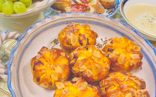 冷凍かぼちゃを混ぜた生地と、成型の際に薄く塗った紫いものペースト🍠の相性が抜群で、王冠型の可愛らしいパンが焼けました。