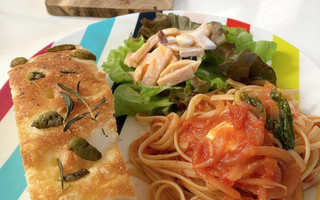 フォカッチャに散らしたローズマリーとオリーブオイルのいい香りが部屋いっぱいに漂い焼き上がる前から美味しそうでした。