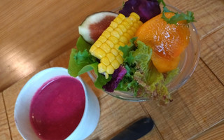 この日のランチはサラダビーツのポタージュとカラフルサラダに甘酒林檎ドレッシング♫