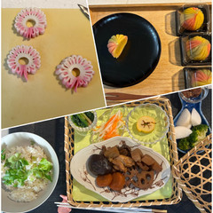 明けましておめでとうございます。前半のおせちレッスンに続き後半も受けました。レッスンでのかまぼこの飾り、とても難しかったけれども先生のご指導のお陰で何とか形になりました。さつまいも餡の練り切り、とても可愛いものが出来ました。お陰様で素敵なお正月が迎えられました。ありがとうございました。とても楽しい教室でした。また参加したいと思います