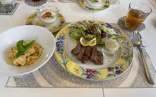 蝶の形の手打ちパスタの作り方、牛肉の下処理、揚げ方、パンナコッタの作り方楽しく学べました。