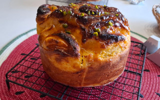 2種類のクリームが入るツインクリームクーヘン。前半はクリーム作りを頑張りました。こういう時はおしゃべりで脱線する事もなく、ひたすら 生地をコネコネ、クリームを混ぜ混ぜ。でも、頑張った甲斐があり、甘い美味しいパンが焼き上がりました。緑のピスタチオも可愛いです。