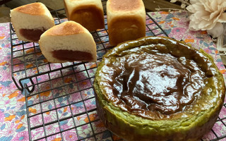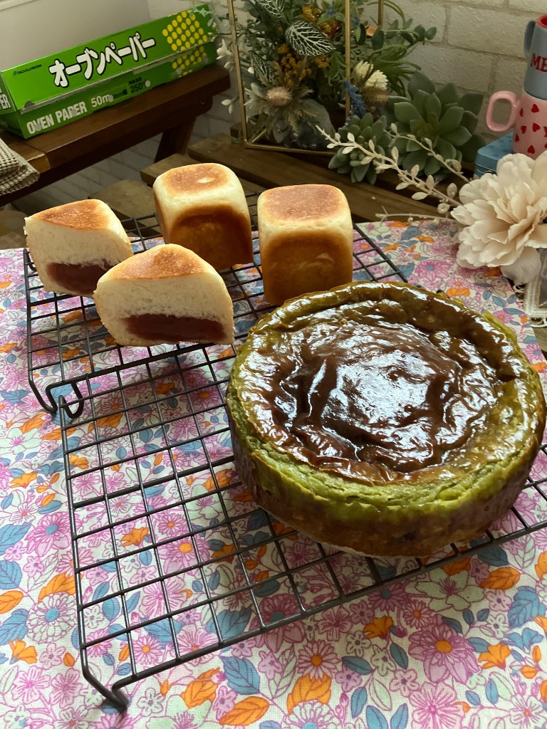 さくらあんぱん、抹茶チーズケーキ作りました。