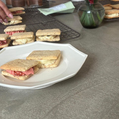 バターサンドレッスンに参加しました。いつも思うのですが、「作る」という概念がそもそもないものを自分で作れる、これもそのひとつです。生地は米粉。クリームの種類が酒粕とイチゴって聞くと、絶対イチゴ!と思っていたのですが、食べたあとは、どちらも本当においしかったのですが、酒粕の方が若干優勢になりました。アレンジもできるとのことで、いろいろ作ってみたいと思います。今回も、ありがとうございました。